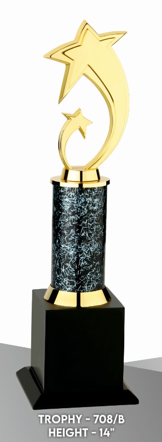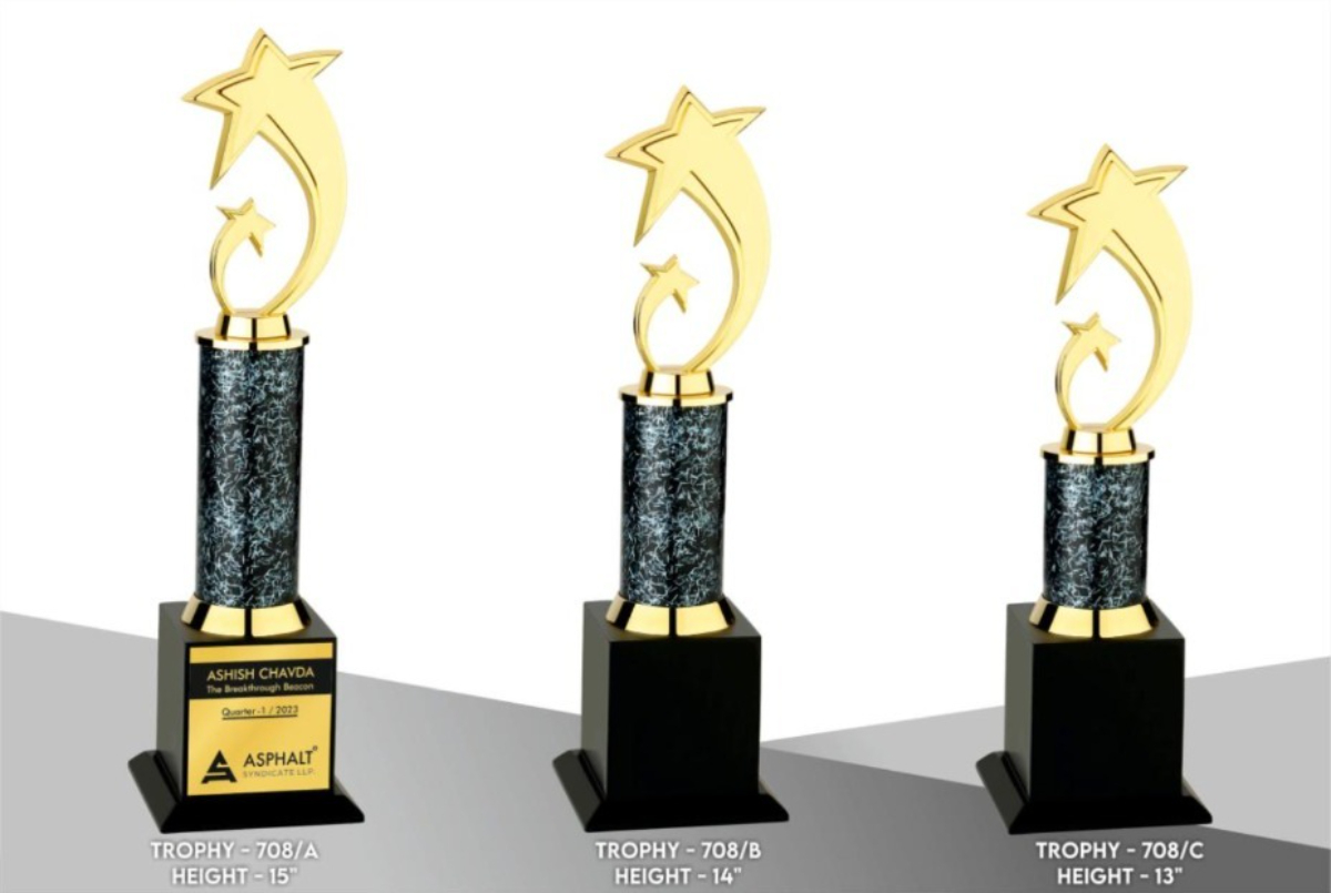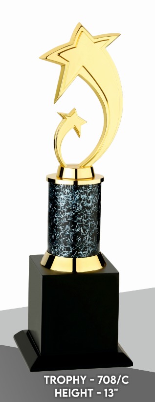 A metal trophy is a durable, often customizable, award presented to recognize achievements, typically crafted from metal and designed for a sleek, modern appearance, available in various finishes like Gold, Silver, and Bronze & in Different Sizes