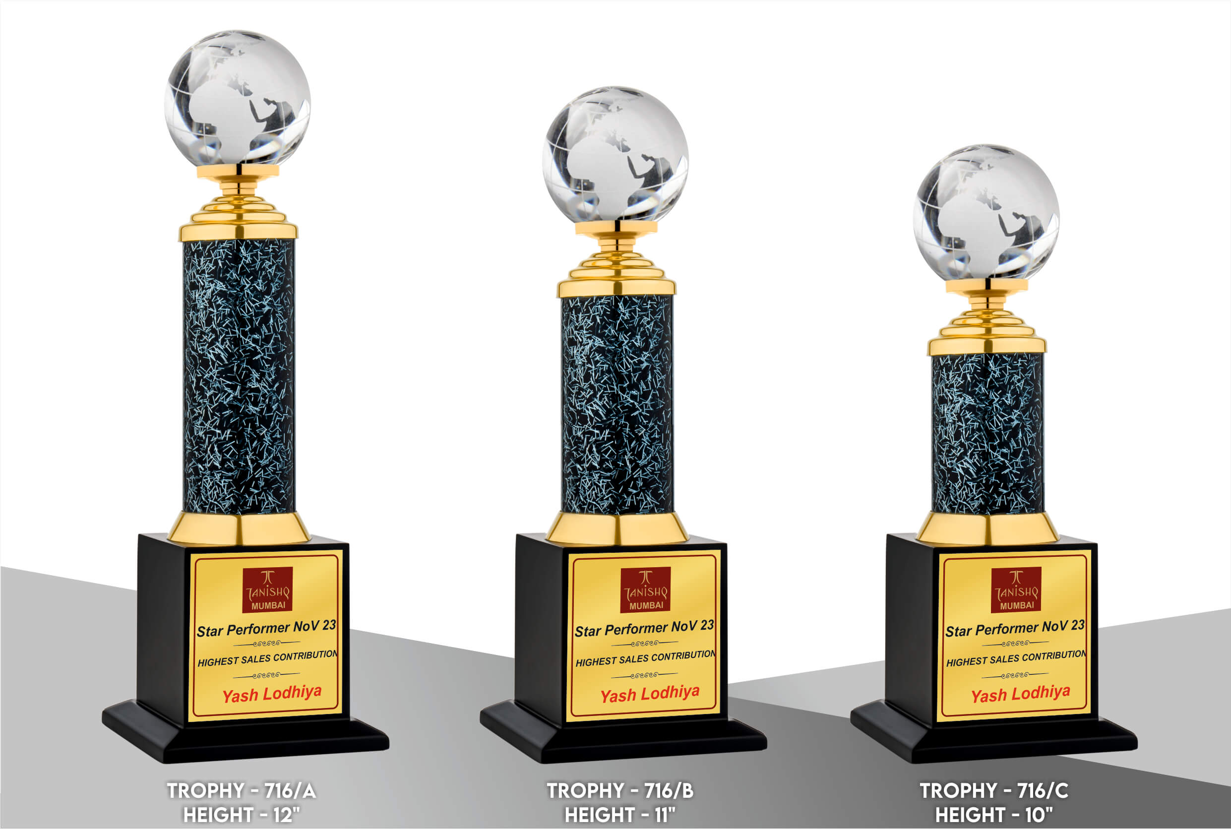 A metal trophy is a durable, often customizable, award presented to recognize achievements, typically crafted from metal and designed for a sleek, modern appearance, available in various finishes like Gold, Silver, and Bronze & in Different Sizes.