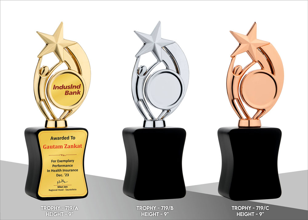 A metal trophy is a durable, often