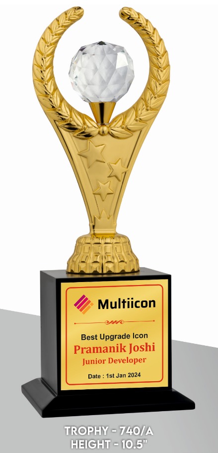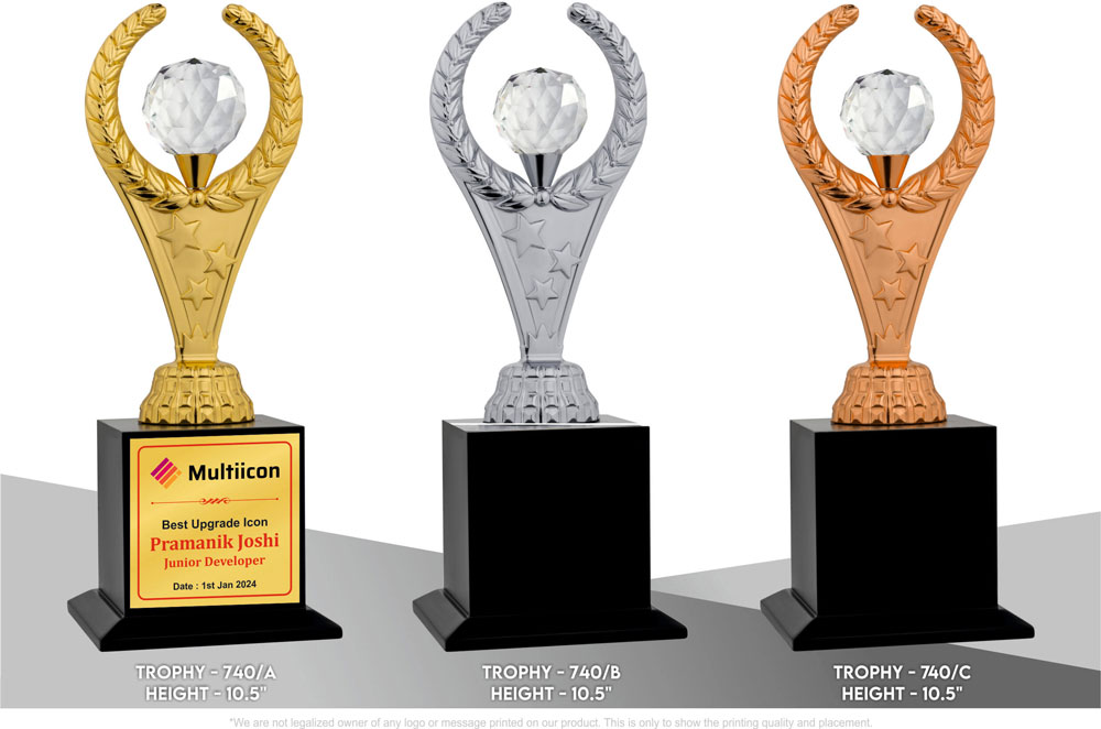 Having a gleaming symbol of pride and achievement, these personalised trophies are available in all three colour metal are masterpieces of artistry. Suitable for all events and awards functions to celebrate excellence. This trophy is entirely personalised with your brand's logo, text, name, and other details.